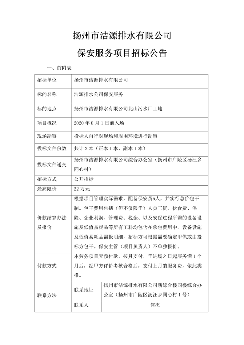 潔源排水公司保安服務(wù)招標(biāo)文件(北山污水廠工地).docx