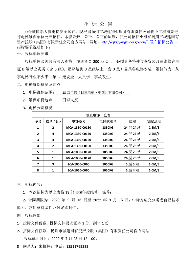 國(guó)泰大廈電梯維保招標(biāo)文件.doc