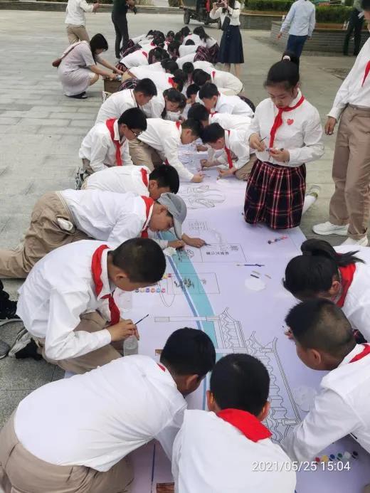 在雄壯的國歌中,活動徐徐拉開帷幕。揚州軍分區(qū)護旗隊,高舉國旗正步入場,并將國旗傳遞給少先隊員代表。隨后廣場響起清亮的少年先鋒隊隊歌:“我們是共產(chǎn)主義接班人,繼承革命先烈的光榮傳統(tǒng)......”,錚錚歌詞、響徹全場,回憶青春、心潮澎湃。最后,資產(chǎn)公司、廣陵消防救援站、團工委、東關(guān)街道婦聯(lián)等單位代表共同在噴繪上進行沙畫作業(yè),表達(dá)心中對建黨百年的衷心祝愿,少先隊員們也用手中彩筆描繪東關(guān)錦繡風(fēng)光。