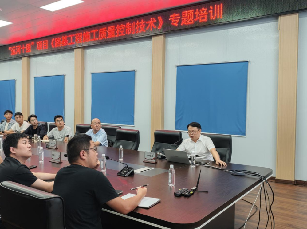 主講人以“路基工程施工質(zhì)量控制技術(shù)”為題,引用路基工程施工真實(shí)案例,從施工準(zhǔn)備、施工流程、施工要點(diǎn),到常見(jiàn)施工問(wèn)題及建議,細(xì)致而全面地講解了改良土路基施工和雙向攪拌樁路基施工的技術(shù)工藝及質(zhì)量控制,培訓(xùn)內(nèi)容兼具技術(shù)性、針對(duì)性和可操作性,為“運(yùn)河十里”項(xiàng)目后續(xù)建設(shè)工作打下堅(jiān)實(shí)基礎(chǔ)。
