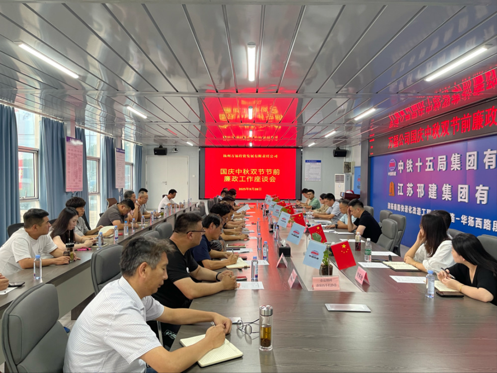 為深入貫徹中央八項規(guī)定精神,營造風清氣正的節(jié)日氛圍,嚴防“八小時外”和“節(jié)日病”,9月28日下午,萬福公司黨支部在潤揚路南延項目部開展節(jié)前廉政工作座談會。萬福公司領導班子成員、各部門負責人及現(xiàn)場工作人員;中鐵十五局、揚建集團、邗建集團、太平洋西北建設集團各項目書記、項目經理和監(jiān)理單位工作人員參加會議。