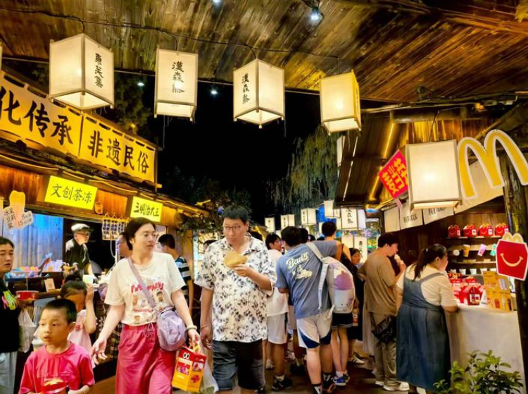 創(chuàng)新融合,不是簡單的“新瓶裝舊酒”,而是要讓傳統(tǒng)空間在當(dāng)代語境中“長”出新生態(tài)。為此,我們以“歷史建筑+潮流業(yè)態(tài)”經(jīng)營理念,推動?xùn)|關(guān)街從“旅游打卡地”向“生活方式體驗(yàn)場”轉(zhuǎn)型。長樂客棧的“鹽商宴”沉浸式餐飲,讓游客穿戴古裝參與“議事廳議價”“碼頭卸貨”劇情,解鎖“漕運(yùn)密碼”“商幫契約”等歷史典故,實(shí)現(xiàn)“一筷一盞皆劇情”的深度體驗(yàn)。項(xiàng)目運(yùn)營以來,累計(jì)接待游客超8000人次,停留時長從2.1小時延長至4.5小時,帶動周邊商戶營收增長30%。街區(qū)東門城樓《創(chuàng)世·山海經(jīng)》數(shù)字孿生平臺更以AR技術(shù)讓128只神獸“破卷而出”,吸引超萬名游客深度體驗(yàn),帶動數(shù)字文創(chuàng)銷售額增長45%,驗(yàn)證了“數(shù)字技術(shù)+在地文化”的變現(xiàn)潛力。這種“傳統(tǒng)空間+數(shù)字科技”的創(chuàng)新融合,讓老街既保有歷史厚重感,又充滿現(xiàn)代生活氣息。